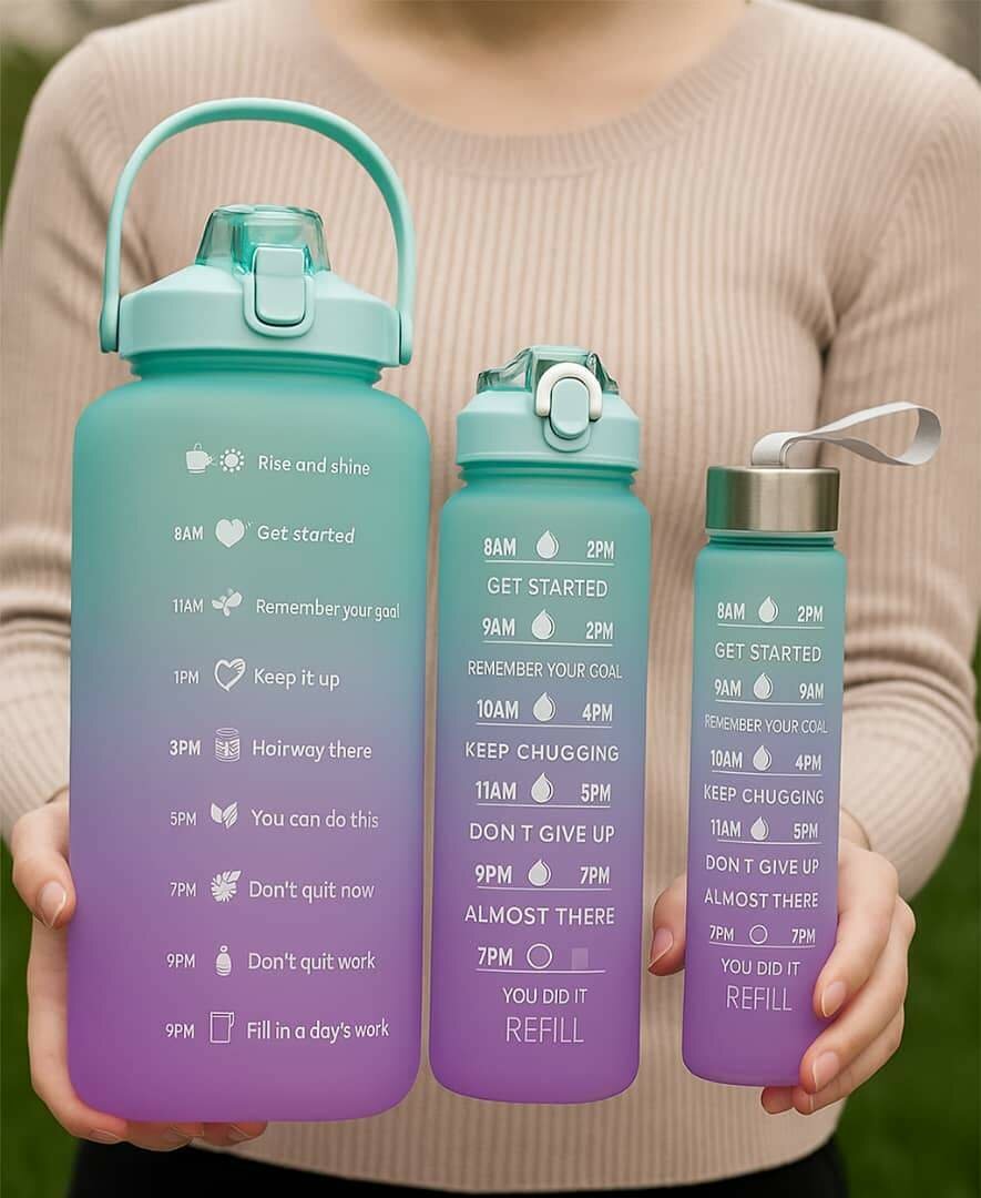 Boostez votre hydratation avec ce set de bouteilles à suivi horaire. Idéales pour le sport, le bureau ou la maison, ces bouteilles encouragent à boire régulièrement. Ultra pratiques et inspirantes!