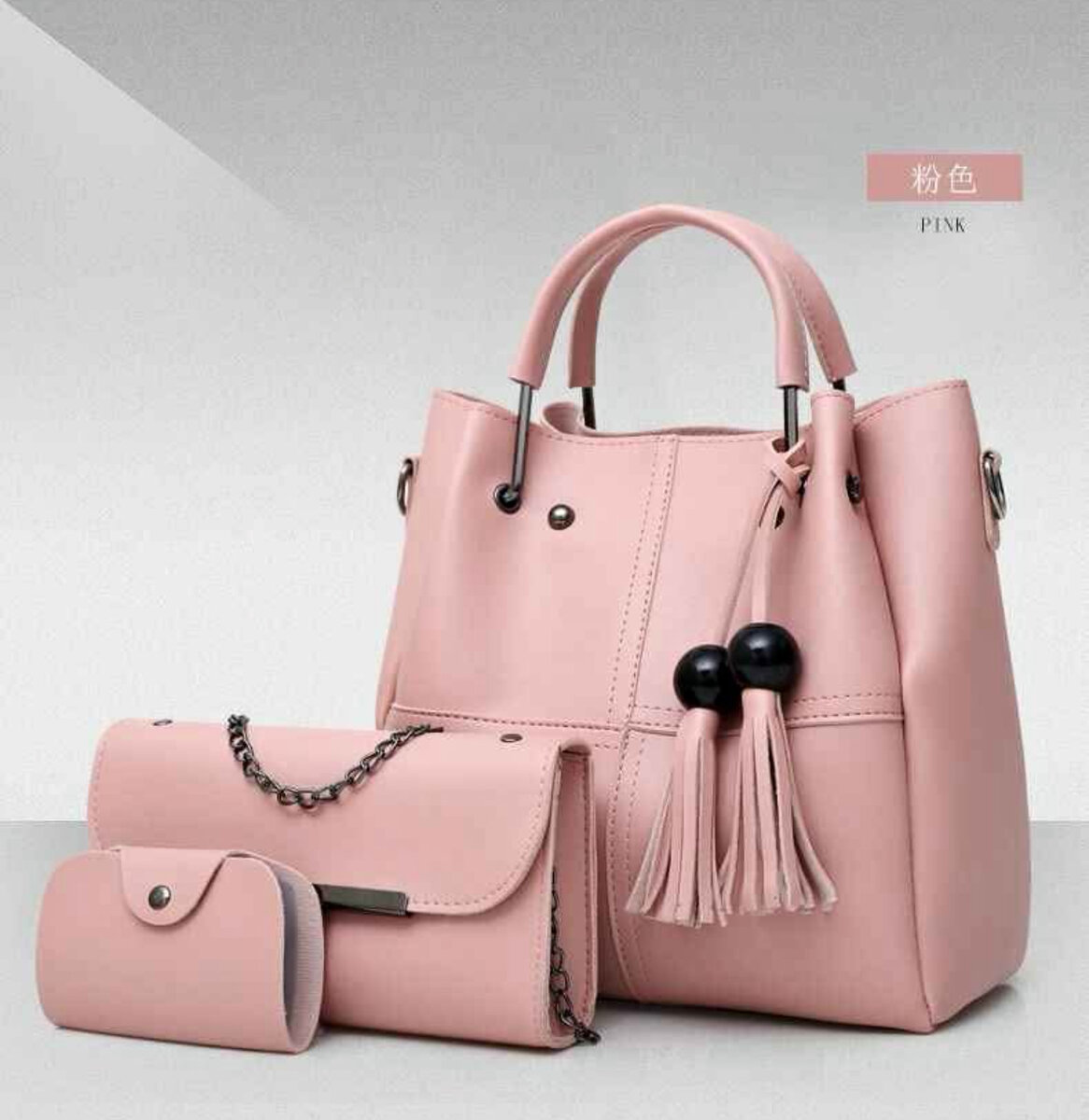 Découvrez cet ensemble élégant de 3 sacs en cuir, parfait pour les femmes modernes. Il comprend un sac à main spacieux, un sac bandoulière et une pochette. Disponible en marron, gris et rose. Matériau de haute qualité, design chic et pratique.