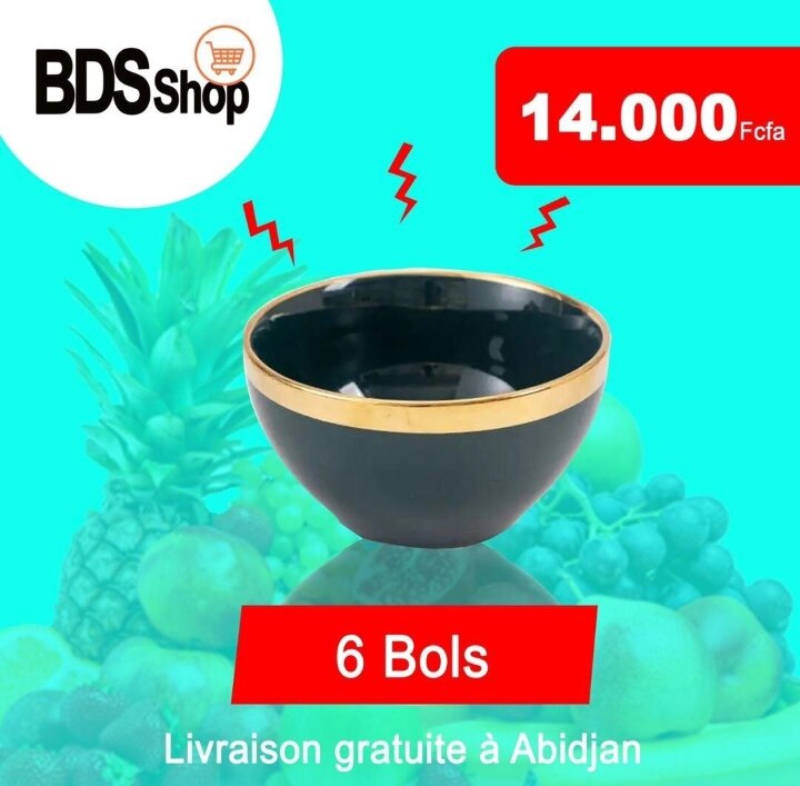 Découvrez notre ensemble de 6 bols élégants pour une touche raffinée à votre table. Parfaits pour les salades, soupes et desserts. Modernes et durables, ils s'adaptent à toute occasion. Livraison gratuite à Abidjan incluse, faites de votre repas une expérience exceptionnelle.