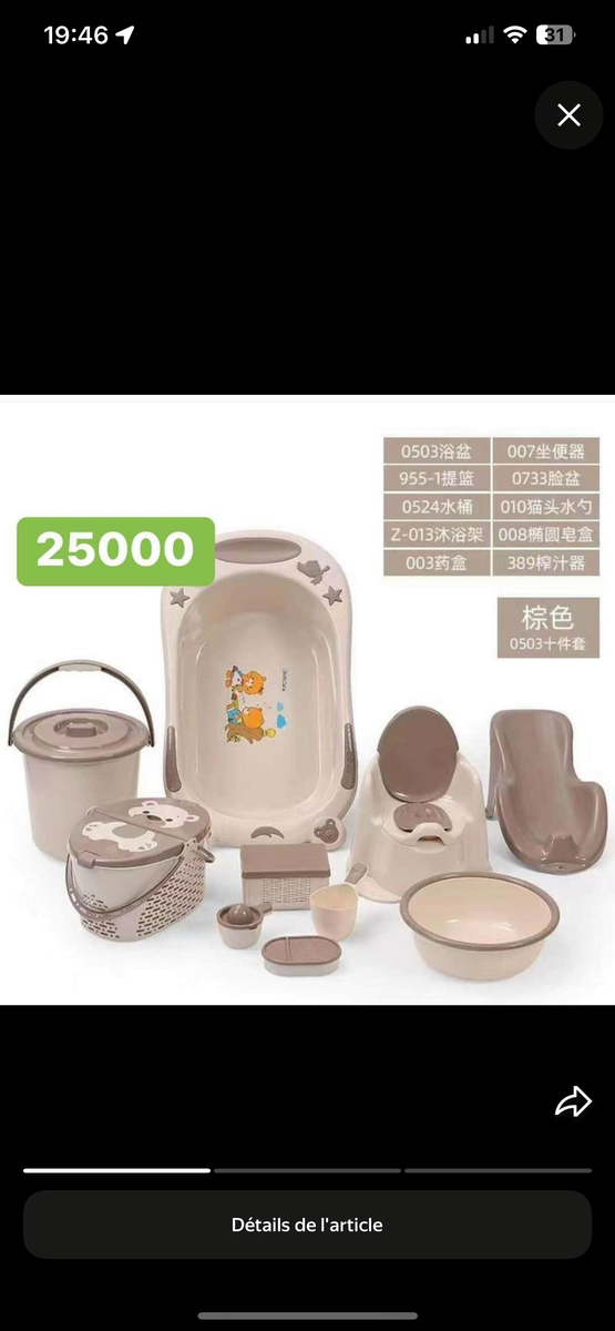 Ensemble de bain pour bébé comprenant une baignoire, un seau, des bols et des accessoires. Conçu pour offrir confort et sécurité lors du bain. Facile à utiliser et à nettoyer.