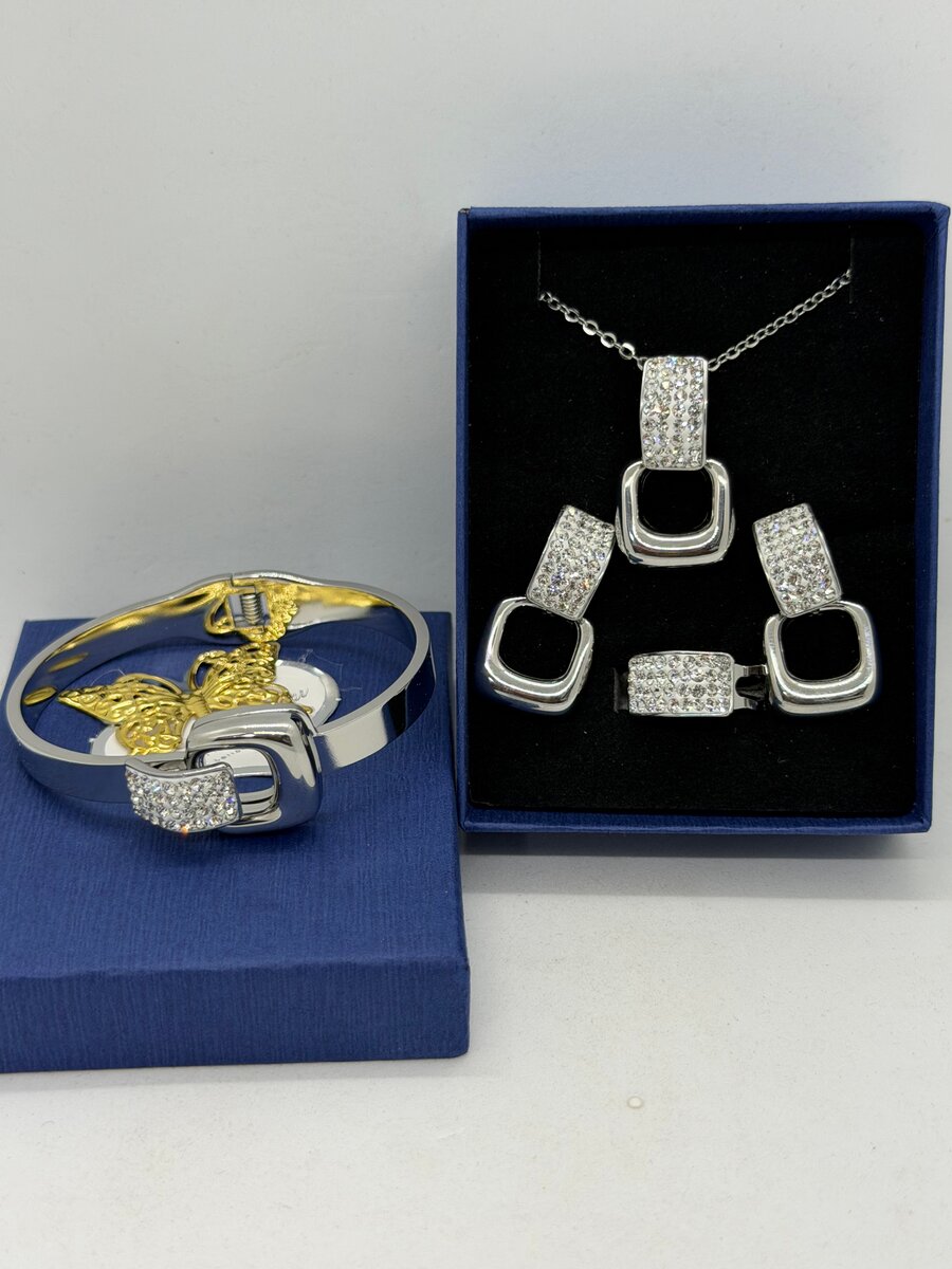 Ensemble de bijoux argenté avec diamants