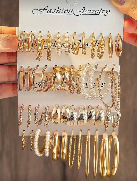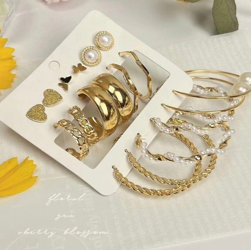 Découvrez notre ensemble de boucles d'oreilles dorées, parfait pour sublimer toutes vos tenues. Avec ses détails en perles et chaînes, c'est un choix élégant pour le quotidien ou des occasions spéciales. Idéal pour un cadeau chic et intemporel.
