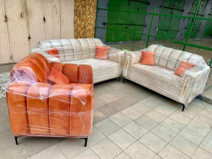 Transformez votre salon avec cet ensemble de canapés modernes et élégants. Comprend un canapé trois places, un deux places et un fauteuil assorti, tous avec des coussins confortables. Idéal pour un confort ultime et un style contemporain dans votre maison.