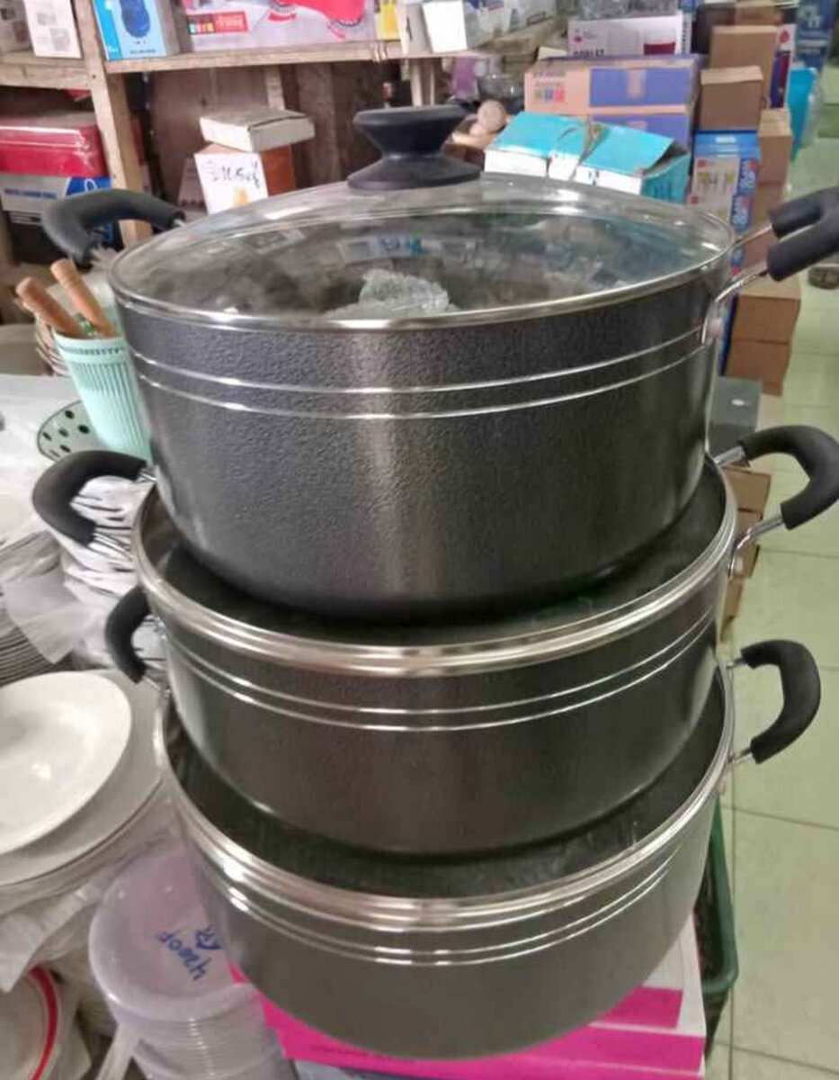 Ensemble de 3 casseroles antiadhésives avec poignées robustes. Idéal pour la cuisson quotidienne. Facile à nettoyer et durable.