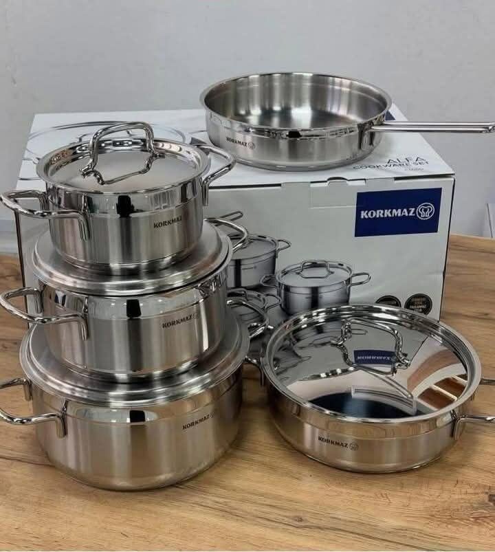Découvrez l'ensemble de casseroles en acier inoxydable Korkmaz, idéal pour la cuisson quotidienne. Cet ensemble comprend plusieurs casseroles et couvercles pour une utilisation polyvalente dans votre cuisine. Fabriqué en acier inoxydable de haute qualité, il est durable et facile à nettoyer.