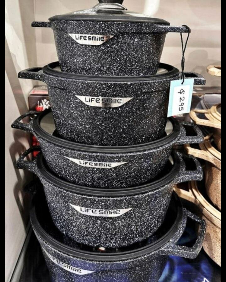 Ensemble de casseroles en pierre antiadhésive Life Smile, 5 pièces, pour cuisson, poêle à frire, accessoire de cuisine. Idéal pour les amateurs de cuisine saine.