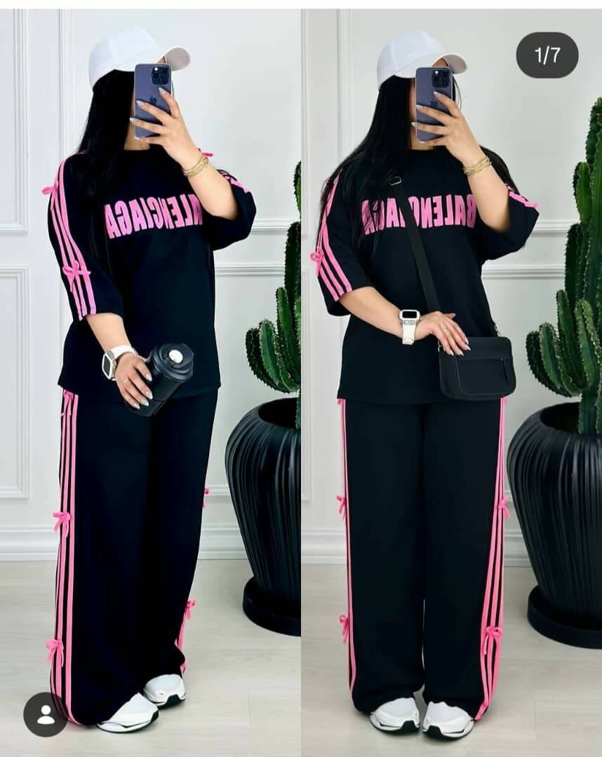 Découvrez cet ensemble de jogging noir et rose, idéal pour un look sportif chic. Confortable et stylé, il est parfait pour vos sorties décontractées ou vos séances de sport. Facile à associer avec des baskets blanches pour un style urbain moderne.