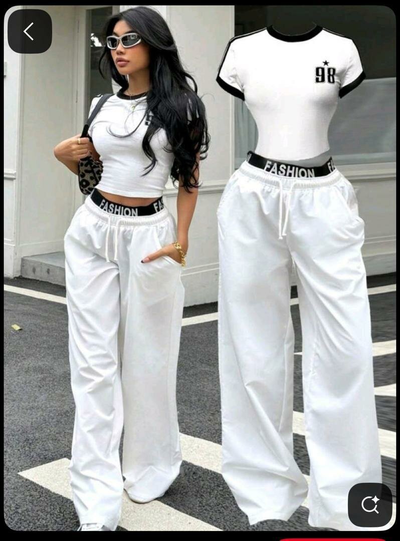 Cet ensemble de jogging blanc chic est parfait pour allier confort et style. Fabriqué à partir de matériaux de haute qualité, il inclut un t-shirt ajusté et un pantalon large avec une ceinture élastique. Idéal pour une tenue décontractée ou sportive.