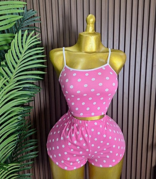 Ensemble short et crop top rose à pois
