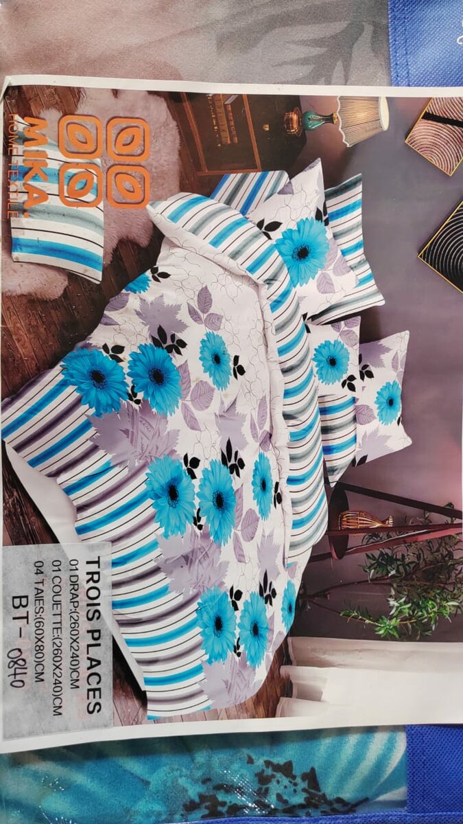 Transformez votre chambre avec cet ensemble de lit floral vibrant. Fleurs bleues et rayures élégantes apportent une touche moderne et fraîche à votre espace. Comprend une housse de couette et deux taies d'oreiller conçues pour un confort optimal. Idéal pour une chambre moderne.
