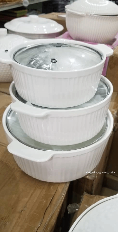 Découvrez cet ensemble de marmites en céramique, parfait pour la cuisson et le service de vos plats préférés. Chacun des pots est doté d'un couvercle en verre et d'une finition élégante, apportant style et fonctionnalité à votre cuisine. Idéal pour les soupes, ragoûts ou plats mijotés, et compatible avec toutes vos recettes familiales.