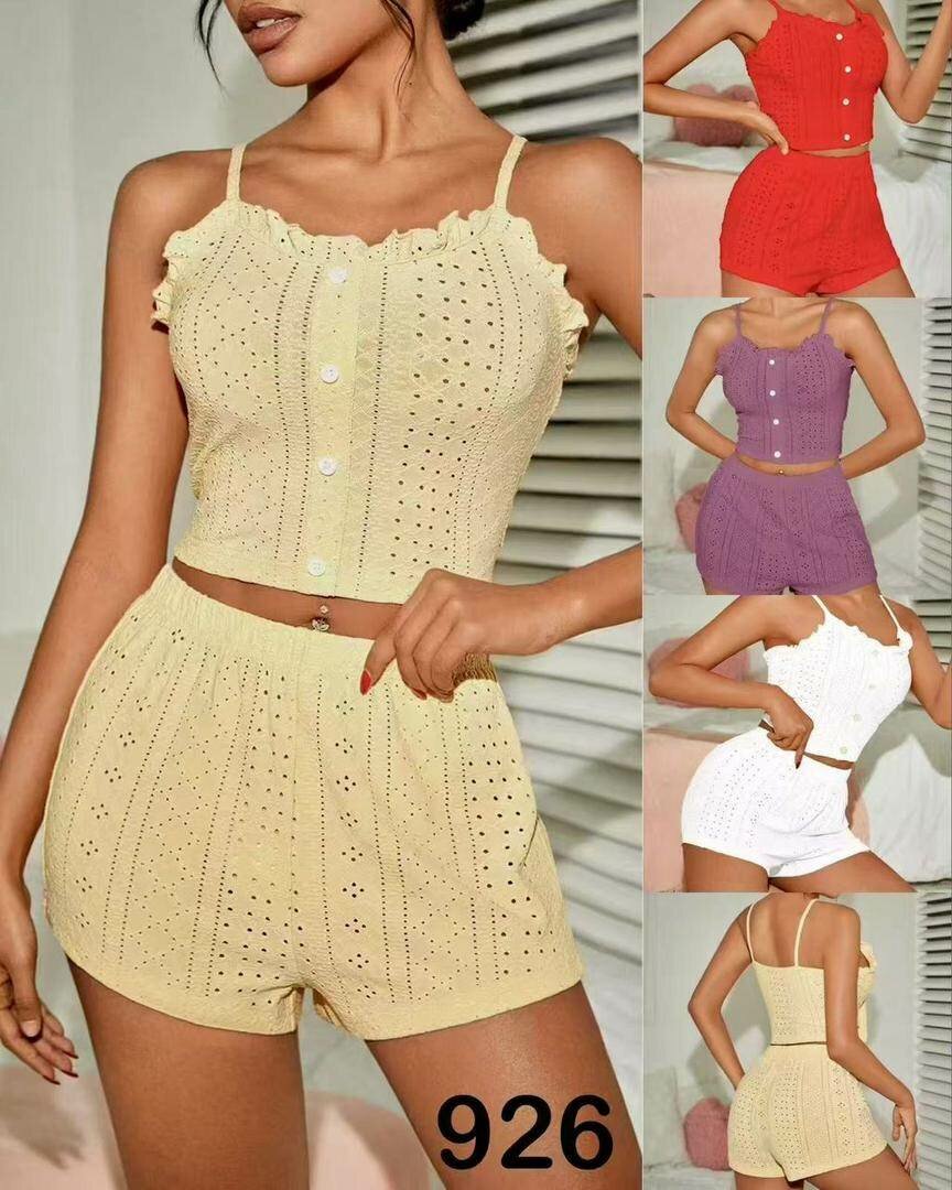 Ensemble de pyjama bohème pour femmes, idéal pour des nuits confortables et stylées. Fabriqué en tissu léger avec un design ajouré charmant, disponible en plusieurs couleurs vives. Parfait pour les soirées détente ou les matins paresseux.