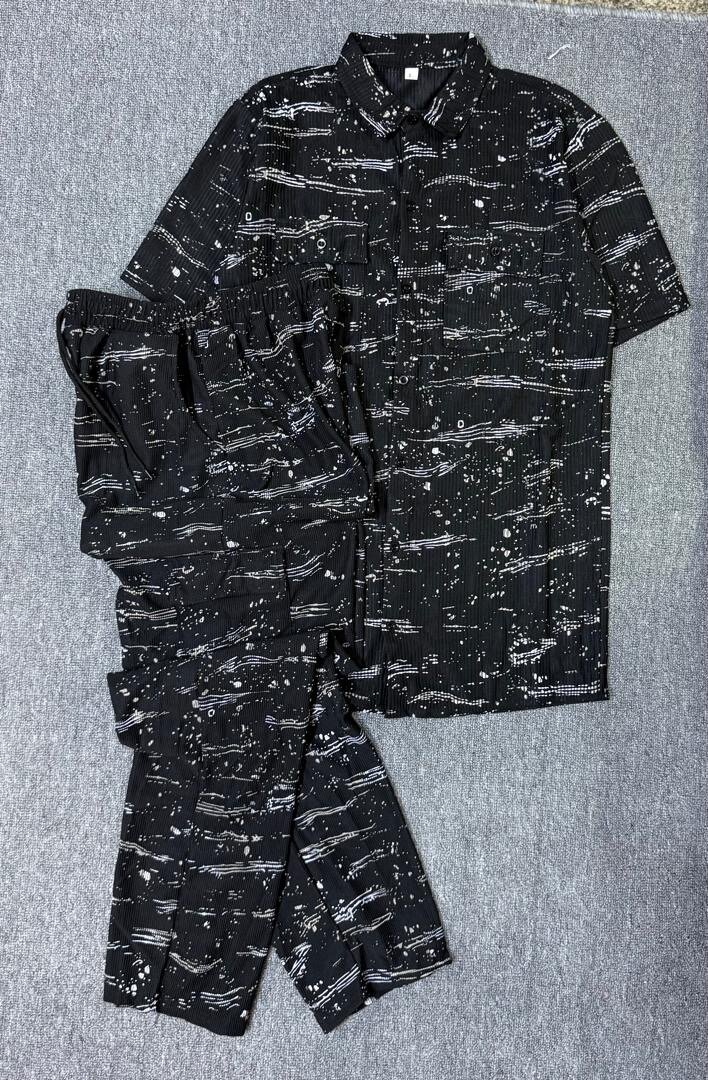 Ce magnifique ensemble de pyjama noir avec imprimé moderne est idéal pour des nuits confortables. Fabriqué en tissu doux, parfait pour une détente à la maison.
