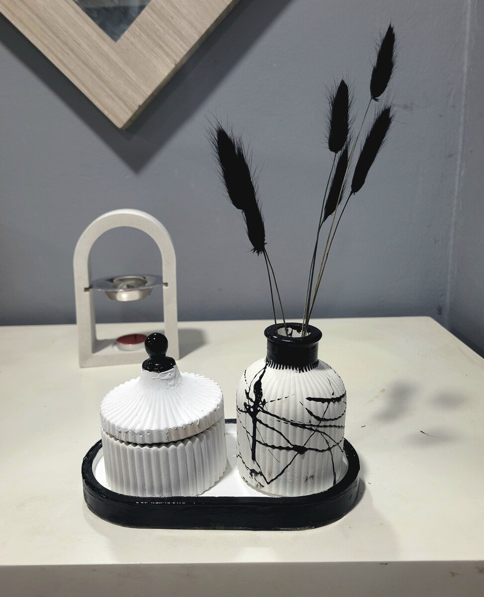 Ajoutez une touche d'élégance moderne à votre intérieur avec cet ensemble de récipients en céramique blanche et noire. Idéal pour la décoration de salon ou de chambre, cet ensemble est parfait pour stocker de petits objets ou simplement comme pièce décorative. Le design minimaliste avec des motifs artistiques en noir apporte une touche sophistiquée qui s'harmonise facilement avec votre espace.