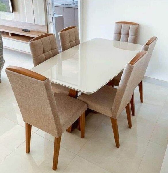 Apportez une touche d'élégance à votre maison avec cet ensemble de salle à manger moderne. Comprenant une table rectangulaire avec plateau blanc et six chaises confortables avec dossier rembourré, il est idéal pour des dîners en famille ou entre amis. Fabriqué avec des matériaux de qualité, cet ensemble est conçu pour durer. Parfait pour tout intérieur moderne.