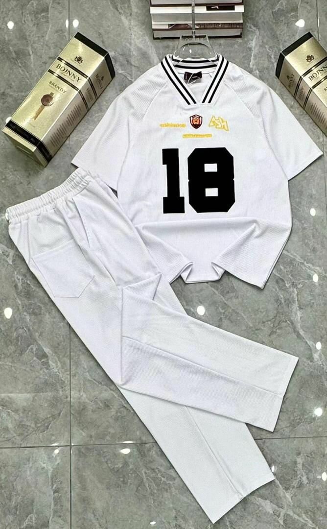 Optez pour cet ensemble de sport blanc, élégant et confortable. Parfait pour le fitness ou les loisirs, avec son design numéroté stylé. Idéal pour se démarquer en toute occasion sportive ou décontractée.