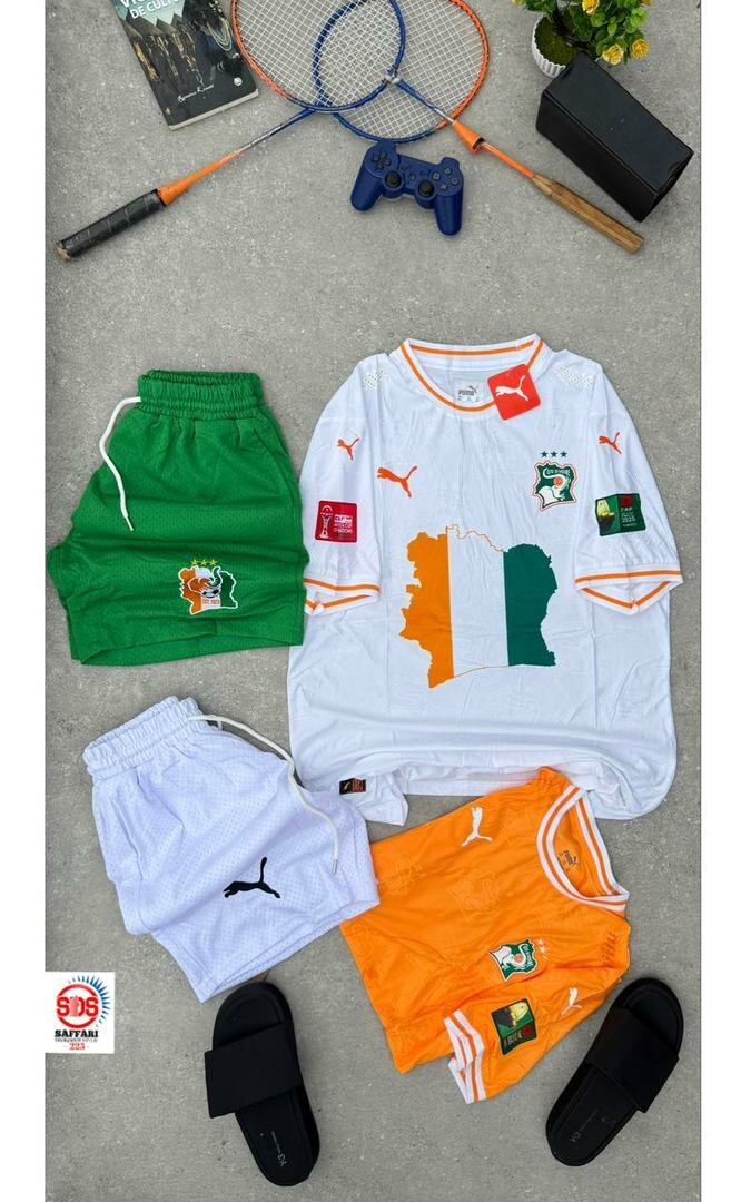 Montrez votre soutien avec cet ensemble de sport Côte d'Ivoire. Comprend un maillot, des shorts et des accessoires pour un look complet. Parfait pour les matchs et les activités sportives. Confortable et stylé!