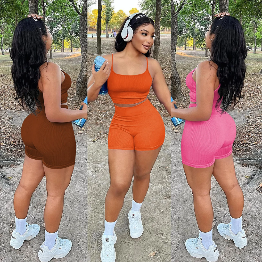 Améliorez vos performances avec cet ensemble de sport pour femme, composé d'un débardeur et d'un short ajustés. Conçu pour offrir confort et style, idéal pour la gym ou le running. Disponible en couleurs jaune actuellement.