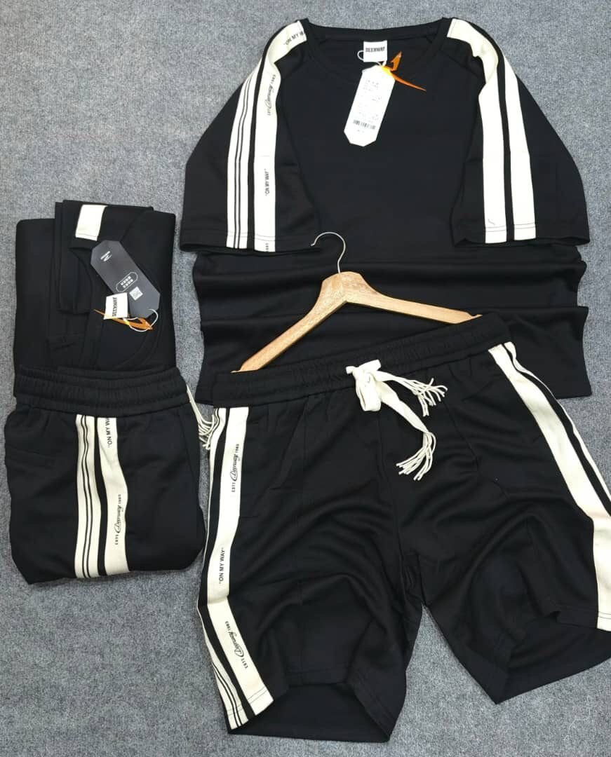 Optez pour cet ensemble de sport noir et blanc, parfait pour l'entraînement et les loisirs. Fabriqué avec des matériaux de haute qualité pour un confort optimal.