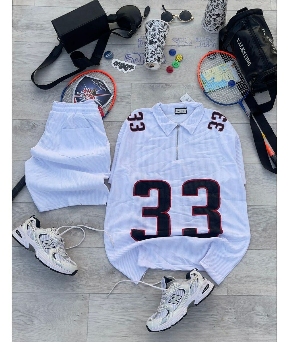 Découvrez cet ensemble de sport stylé avec un t-shirt à col zippé, parfait pour les amateurs de sport ou de mode urbaine. Idéal pour le tennis ou les loisirs détendus. Confort et style réunis.