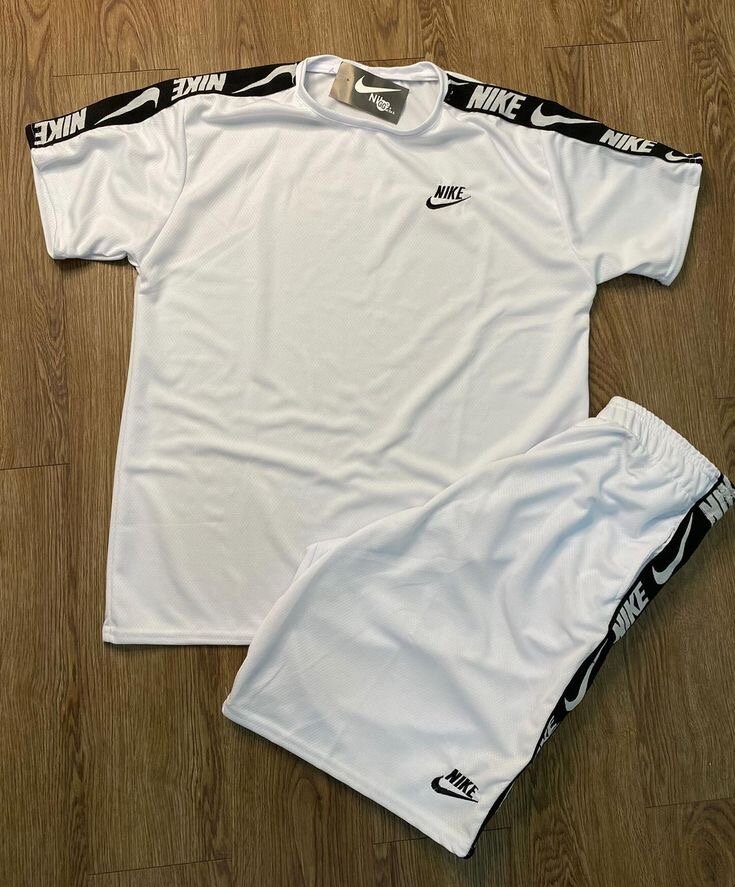 Explorez le confort et le style avec cet ensemble de sport Nike de haute qualité. Idéal pour les séances de sport ou les sorties casual, cet ensemble comprend un t-shirt et un short assorti. Fabriqué dans un matériau respirant pour garder au frais, avec un design moderne et élégant. Parfait pour les amateurs de sport et de mode!