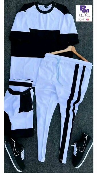 Ce superbe ensemble de sport noir avec des bandes blanches est idéal pour les séances d'entraînement ou les sorties décontractées. Conçu pour le confort et la flexibilité, il est parfait pour rester actif tout en étant à la mode. Le look moderne et épuré convient aux hommes et aux femmes. Un choix idéal pour la gym ou les promenades urbaines.