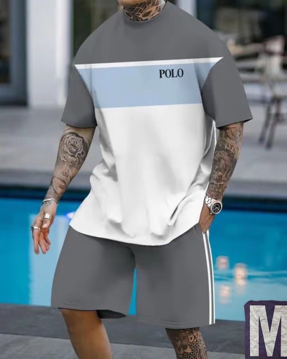 Ensemble deux pièces pour homme comprenant un t-shirt et un short. Conçu pour le sport et les activités de loisirs, il offre un confort optimal et un style décontracté. Composé de matériaux de qualité, cet ensemble est parfait pour les séances de sport ou simplement pour se détendre.