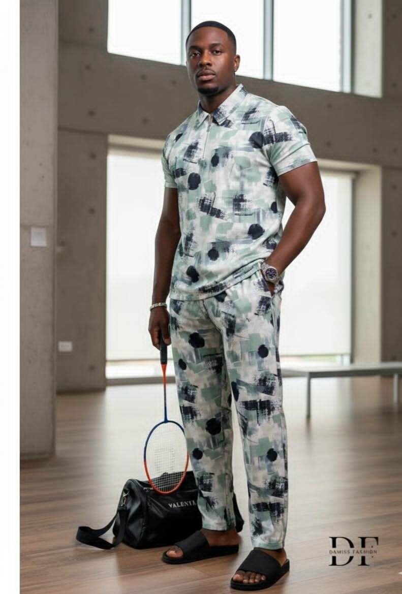 Optez pour cet ensemble de sport élégant pour hommes, idéal pour un look décontracté et à la mode. Conçu pour le confort, cet ensemble comprend un haut léger à col polo et un pantalon assorti. Parfait pour les loisirs ou une sortie en ville. Disponible dans des motifs modernes et attrayants.