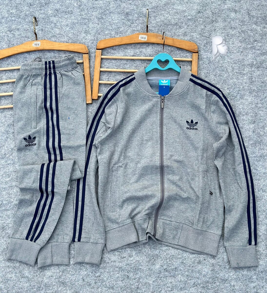 Découvrez cet ensemble de survêtement Adidas, parfait pour le sport et les moments de détente. Disponible en blanc et gris, il offre style et confort avec son design à trois bandes. Idéal pour les amateurs de mode sportive.