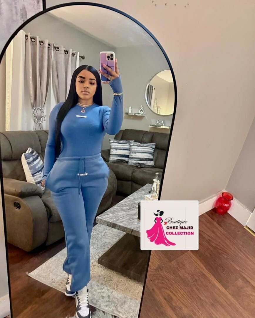 Confort et style se rencontrent dans cet ensemble de survêtement bleu pour femmes. Idéal pour les journées relax, il offre une coupe ajustée et moderne. Parfait pour un look décontracté à la maison ou en sortie.