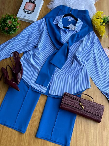 Ensemble chic bleu à rayures