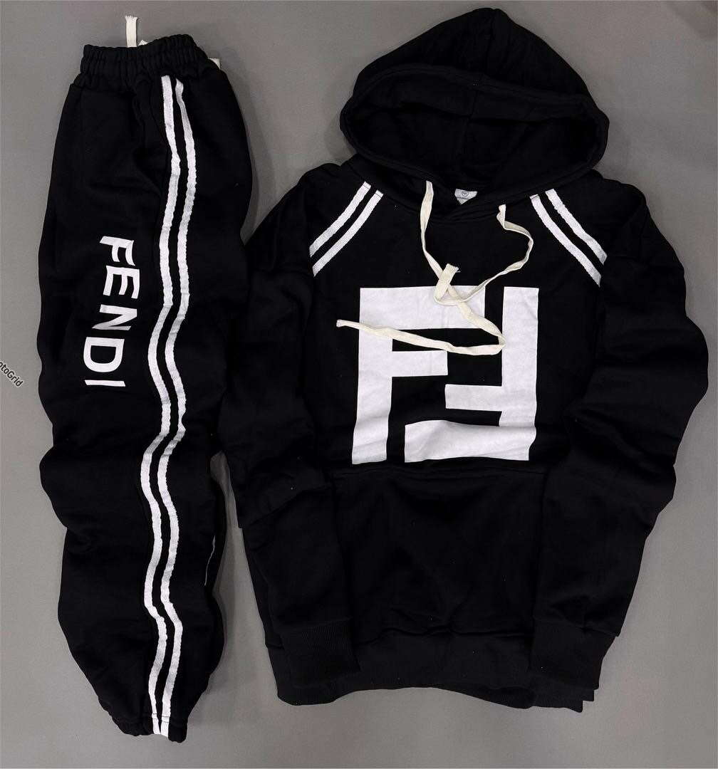 Optez pour le confort et le style avec cet ensemble de survêtement Fendi. Parfait pour un look décontracté, ce set inclut un sweat à capuche et un pantalon assorti en noir élégant avec des accents de logo distinctifs. Idéal pour des sorties informelles ou pour se détendre à la maison. Une combinaison de mode et de fonctionnalité pour les amateurs de marque.