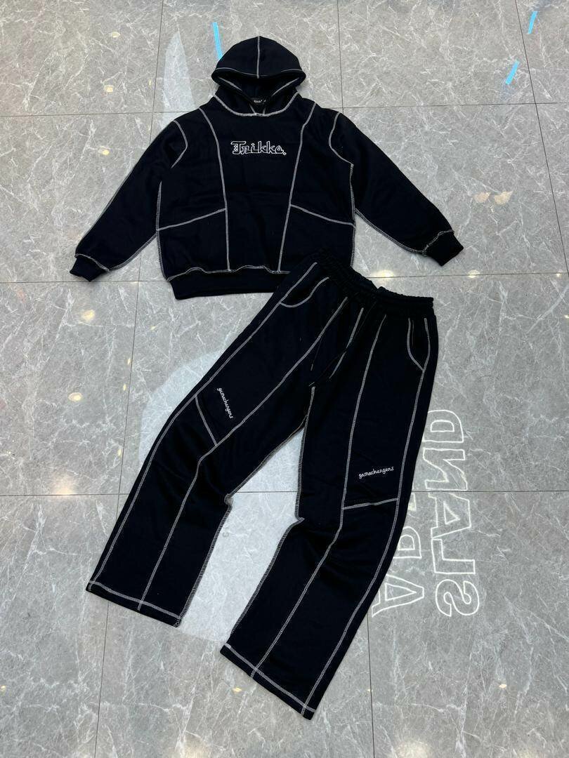 Adoptez un style décontracté avec cet ensemble de survêtement noir. Fabriqué avec des matériaux confortables, il est parfait pour une journée relax à la maison ou une sortie sportive. Conçu pour offrir une coupe élégante et moderne. Idéal pour rester à l'aise tout en ayant du style!