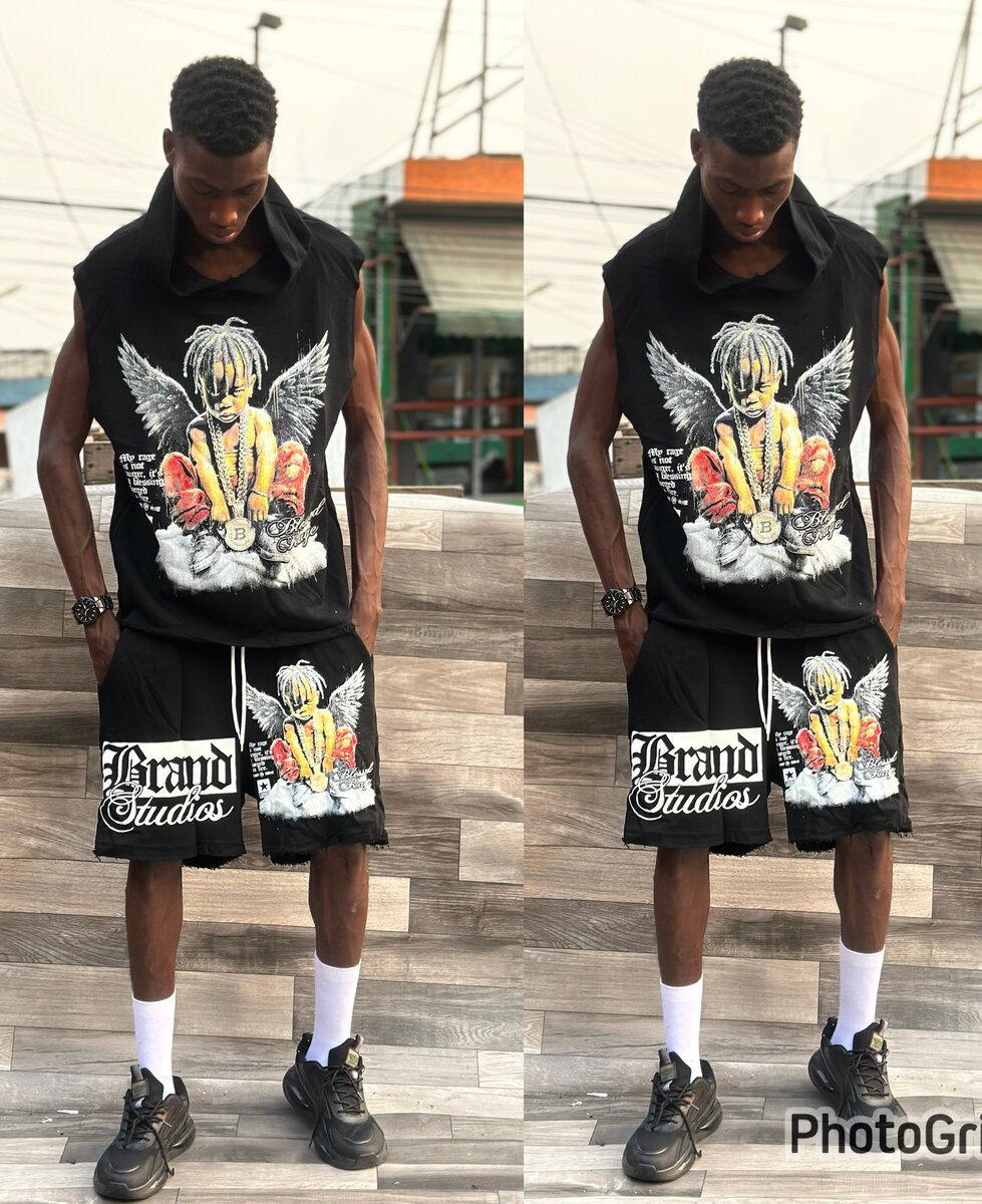 Ensemble de survêtement pour hommes en coton, composé d'un gilet et d'un short. Idéal pour les activités sportives ou pour une tenue décontractée.