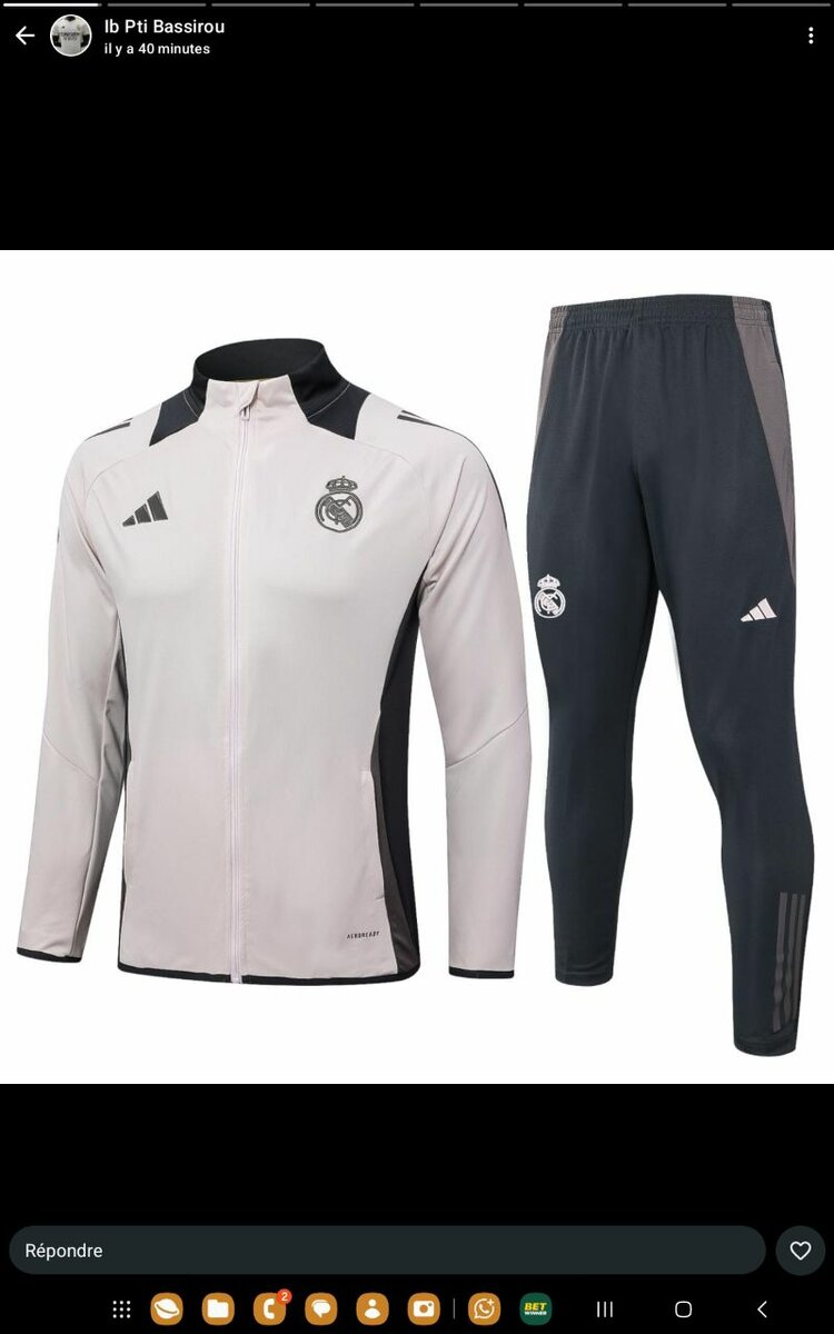 Adoptez le style sportif avec cet ensemble de survêtement Real Madrid a' un prix special pour votre 1ere commande du jour. Idéal pour les fans et les sportifs, ce set offre confort et design moderne. Parfait pour l'entraînement ou pour un look décontracté.