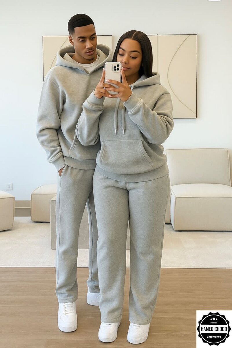Découvrez notre ensemble de survêtement unisexe, idéal pour un confort quotidien et un style décontracté. Fabriqué en tissu doux et respirant, ce survêtement est parfait pour les journées de détente ou les activités sportives légères. Disponible en plusieurs couleurs classiques, il s'adapte à toutes les occasions, que ce soit pour sortir ou se détendre à la maison. Ne manquez pas cette pièce incontournable pour votre garde-robe!