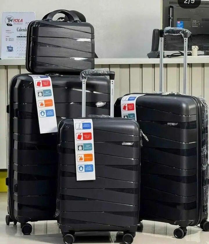 Ensemble de valises rigides en ABS noir, léger et durable. Parfait pour les voyages. Différentes tailles disponibles.