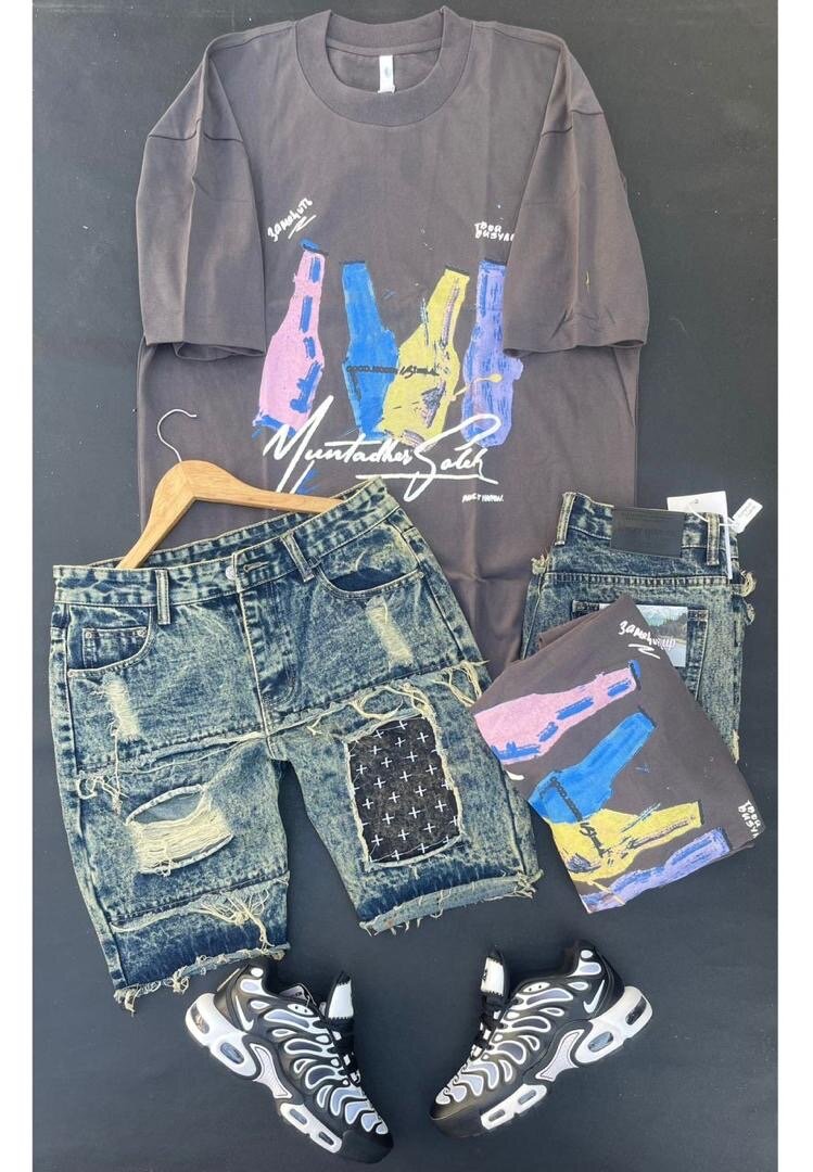 Découvrez notre ensemble tendance comprenant un t-shirt imprimé, un short en denim stylé et des baskets assorties. Parfait pour un look décontracté et dynamique, idéal pour les sorties entre amis ou les soirées d'été. Mettez en valeur votre style avec ce combo incontournable!