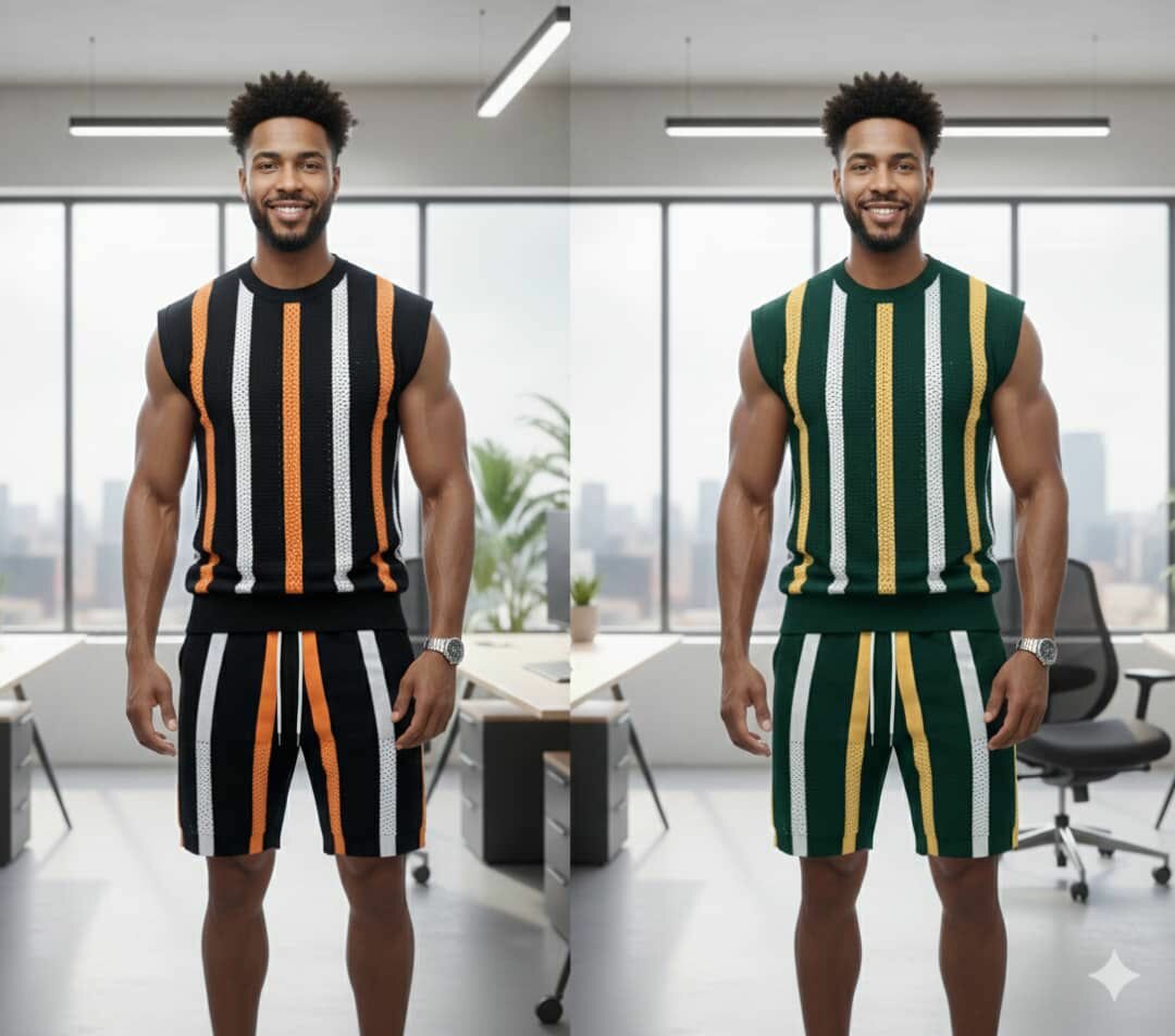 Découvrez notre ensemble décontracté et stylé, parfait pour l'été ou une journée de détente. Ce set est composé d'un débardeur confortable et d'un short assorti, tous deux ornés de rayures modernes et dynamiques. Fabriqué dans un tissu léger, il garantit une aération optimale et un confort supérieur. Idéal pour les sorties décontractées, les vacances ou simplement pour se détendre à la maison. Un choix parfait pour ceux qui aiment afficher une allure tendance sans sacrifier le confort. Fait pour les hommes actifs et soucieux de leur style!