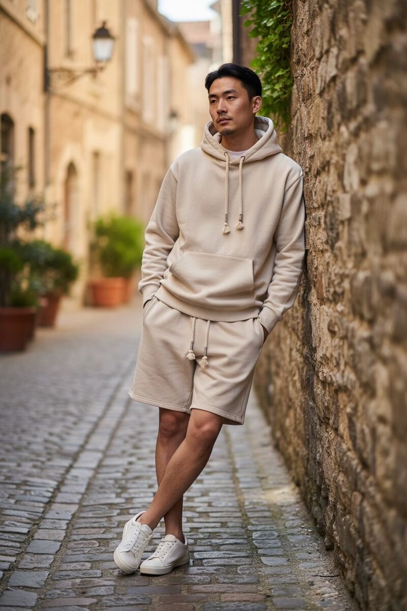 Découvrez notre ensemble décontracté parfait pour un style moderne et confortable. Composé d'un sweat à capuche et d'un short assorti, cet ensemble est idéal pour vos sorties urbaines ou vos moments de détente à la maison. Fabriqué en matière douce et respirante, il offre un confort inégalé. Se décline en plusieurs couleurs raffinées pour s'adapter à votre style personnel. Optez pour le confort sans compromis sur le style !