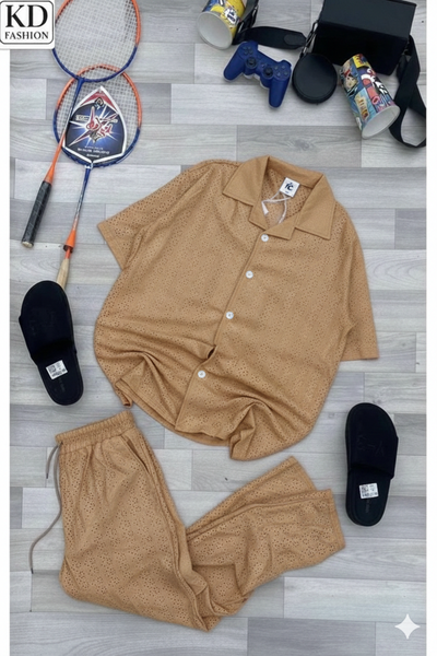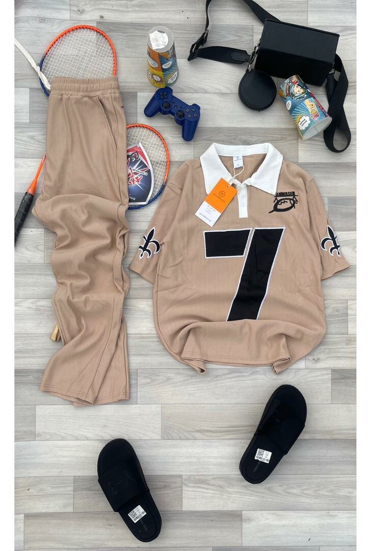 Optez pour le style et le confort avec cet ensemble décontracté beige pour homme, idéal pour le quotidien ou les sorties sportives. Composé d'un polo à manches courtes avec un motif unique et d'un pantalon assorti, cet ensemble est parfait pour l'homme moderne. Associez-le avec des accessoires sportifs pour un look complet. Fabriqué avec des matériaux doux, il assure une liberté de mouvement totale.