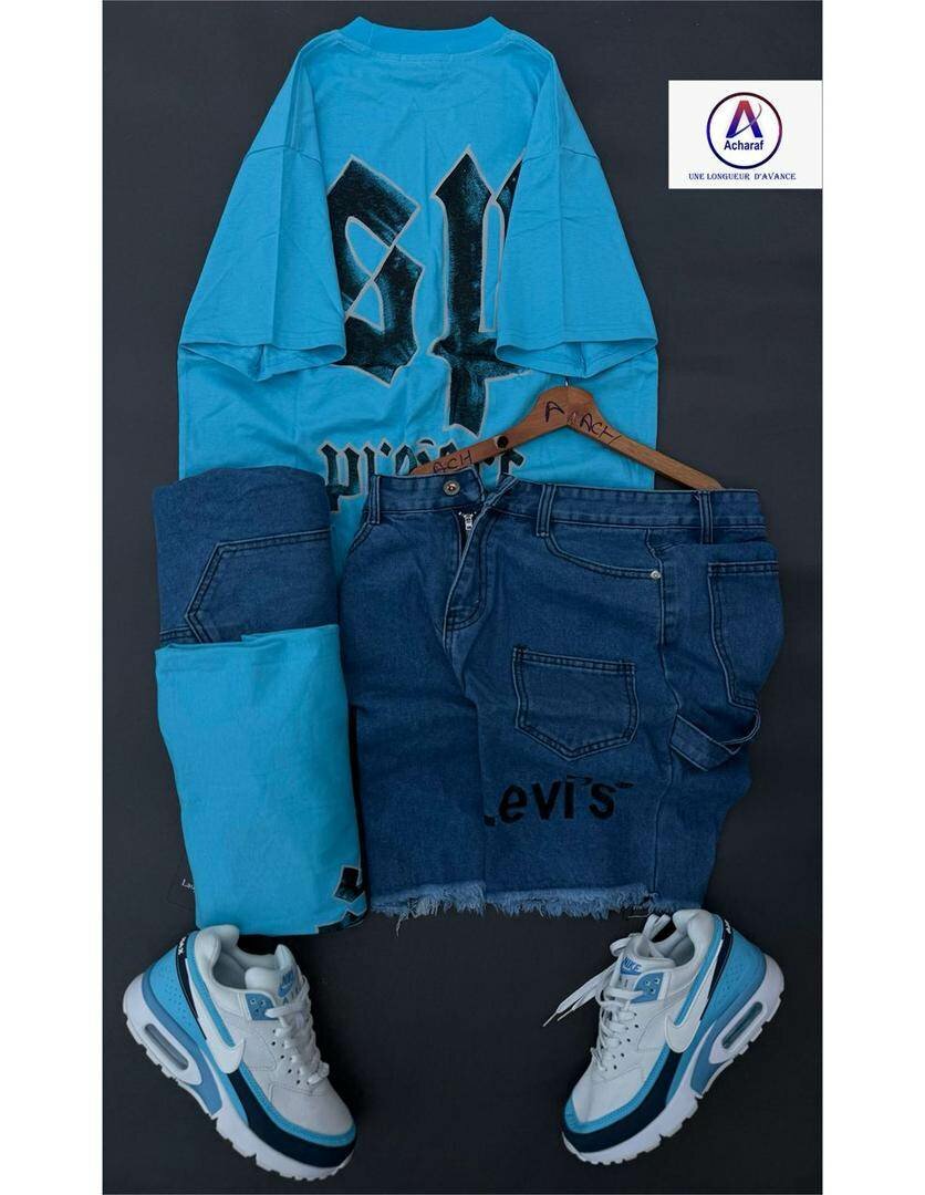 Découvrez cet ensemble décontracté et stylé, parfait pour une journée active ! Comprend un t-shirt confortable, un short en jean iconique et des baskets assorties pour compléter votre look urbain et tendance. Idéal pour les sorties, les loisirs ou les moments de détente. Adoptez le style et le confort où que vous soyez !