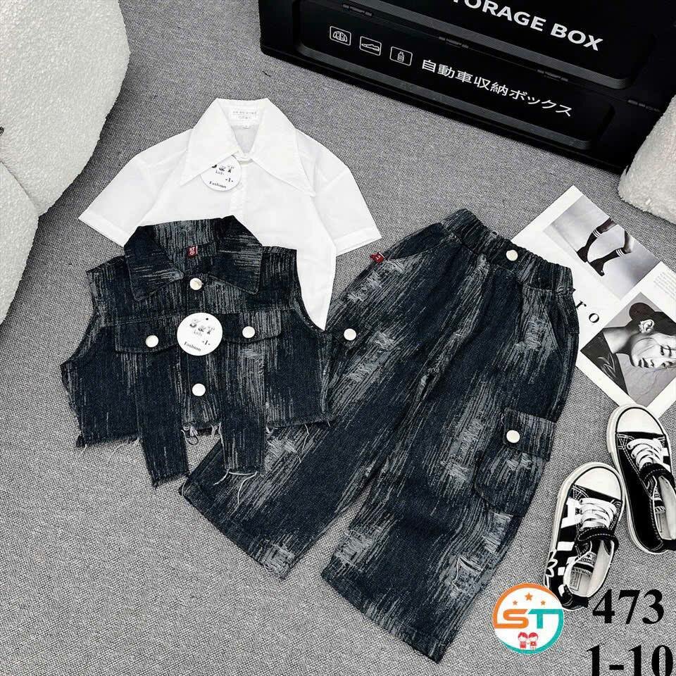 Ce set en denim pour enfants comprend une chemise blanche chic, un gilet tendance et un pantalon ample. Parfait pour un look casual et confortable. Idéal pour les sorties et les occasions spéciales.