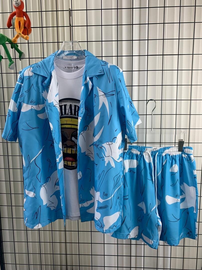 Ensemble chemise et short pour homme, idéal pour un look estival décontracté. Design unique avec motifs imprimés. Parfait pour les vacances et les sorties en plein air.