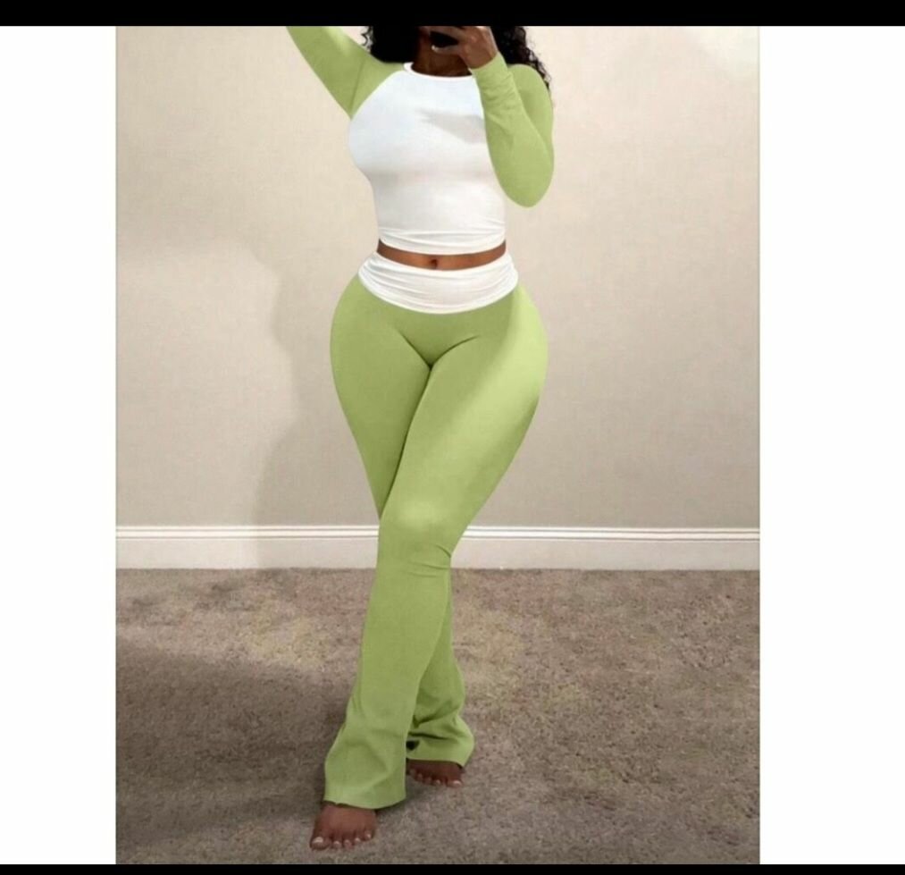 Confort et style avec cet ensemble décontracté pour femme en vert et blanc. Parfait pour le quotidien, un look tendance et confortable à la fois.