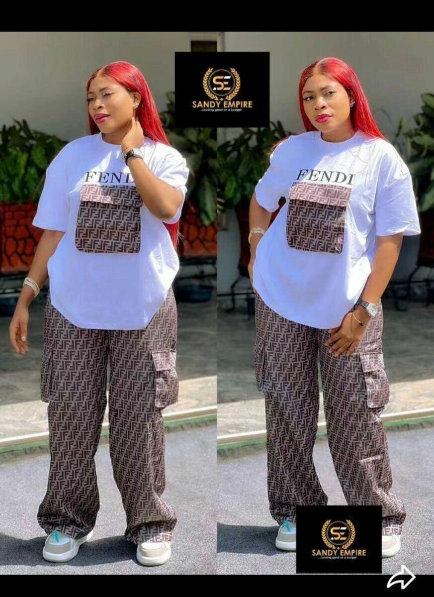 Adoptez un style chic et confortable avec cet ensemble Fendi décontracté. Le t-shirt ample avec logo et les pantalons cargo apportent une touche moderne à votre look quotidien. Parfait pour une journée relax ou une sortie entre amis. Alliez mode et confort avec Fendi.