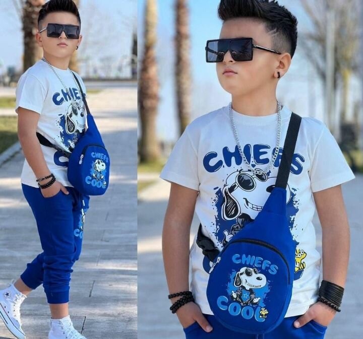 Ce superbe ensemble décontracté pour garçon comprend un t-shirt imprimé tendance, un pantalon confortable et un sac à bandoulière cool. Parfait pour une sortie décontractée ou une journée active. Style et confort réunis pour une allure moderne.