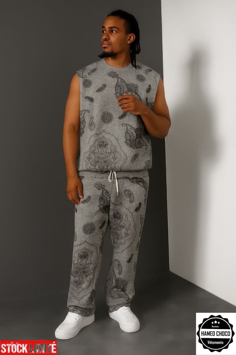 Cet ensemble décontracté pour homme, élégant et confortable, est idéal pour une tenue quotidienne. Fabriqué avec un tissu doux orné de motifs modernes, il vous assure confort et style tout au long de la journée. Parfait pour les sorties décontractées ou les moments de détente à la maison. Un choix parfait pour ceux qui cherchent à allier mode et confort.
