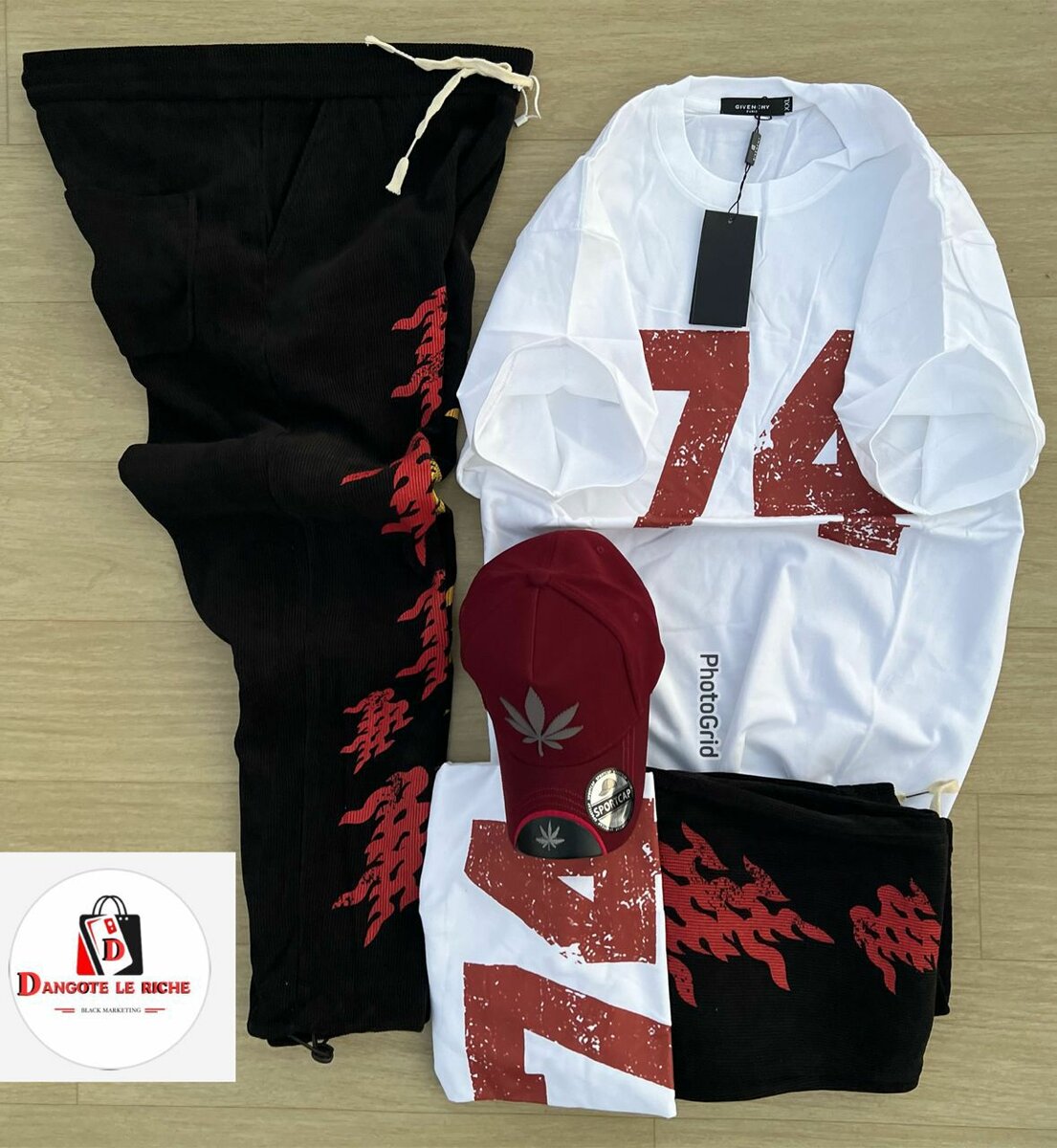 Style unique et confortable avec cet ensemble décontracté pour homme. Comprend un t-shirt et un pantalon assortis avec des motifs rouges tendance. Idéal pour un look sportif ou casual, parfait pour toute occasion décontractée. Tissu doux pour un confort maximal.