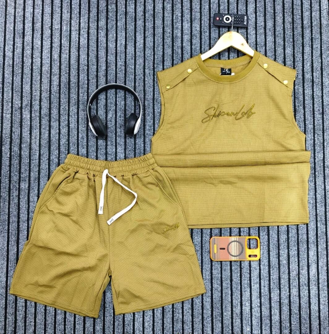 Optez pour ce confortable ensemble sans manches pour hommes, idéal pour les journées décontractées. Fabriqué à partir de matériaux respirants, il comprend un t-shirt sans manches et un short assorti. Parfait pour le sport ou le quotidien grâce à son design moderne et sa coupe ample. Le choix parfait pour un look urbain et tendance.